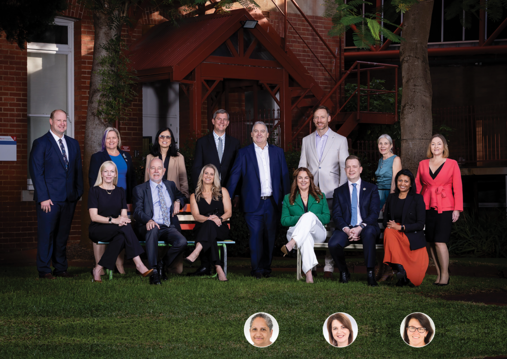 Aylward, Alisha Thompson, Lesley Bennett, Ben Noteboom, Chandima Hiyare-Hewage. Absent (left to right, inset) – Francine Eades, Sandra Miller, Susan Mylne.