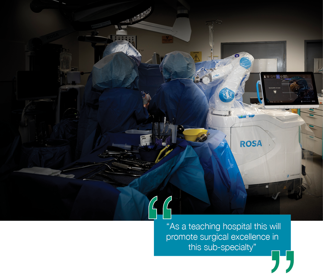 ROSA does not perform the surgery but assists the surgeon by providing real-time data and guidance to enhance precision, aiding the surgery and allowing the surgeon to make complex cases more technically feasible.